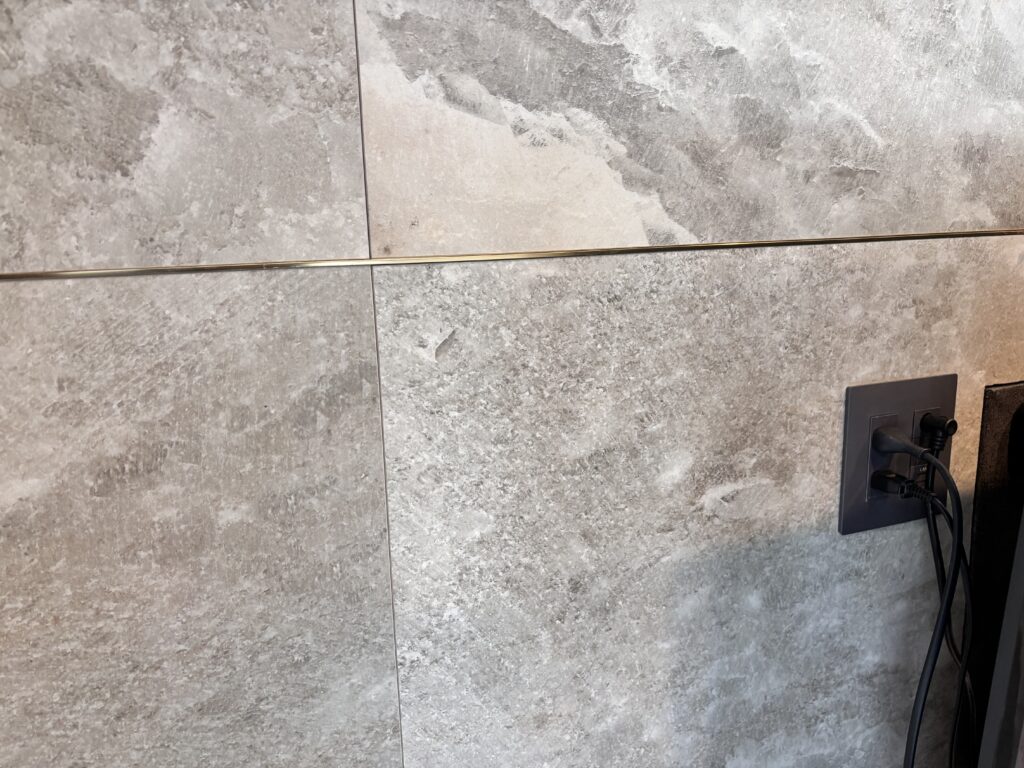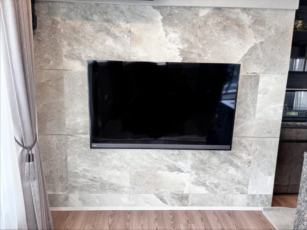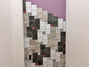 新築マンションのテレビ背面のタイル施工を行いました。