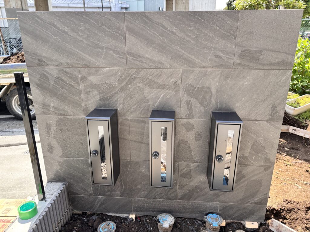 埼玉県ふじみ野市にて、機能門柱のタイル施工を行いました。