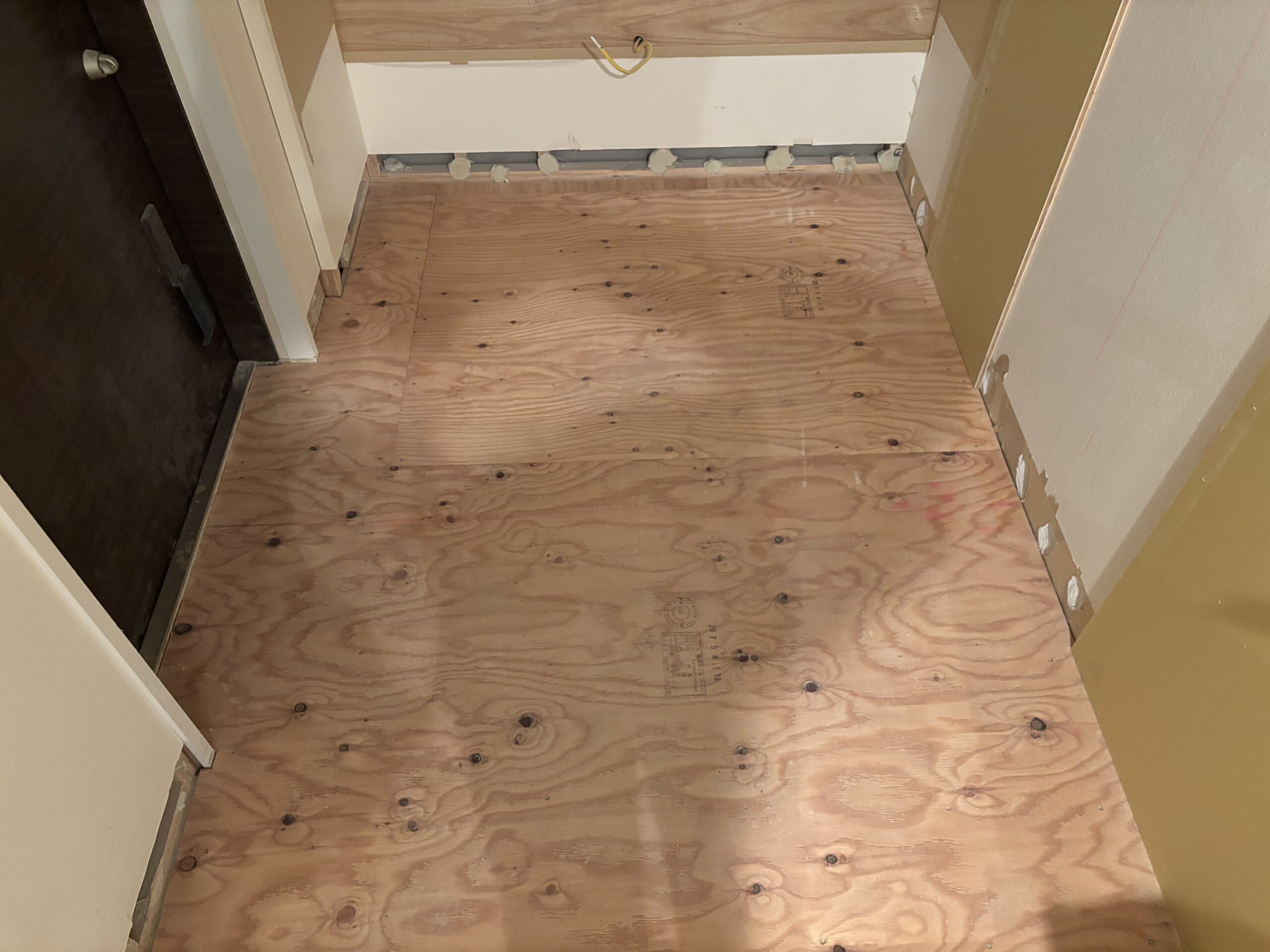 東京都内の高層マンションにて、玄関、框、巾木、廊下、洗面室、トイレのリフォーム工事を行いました。