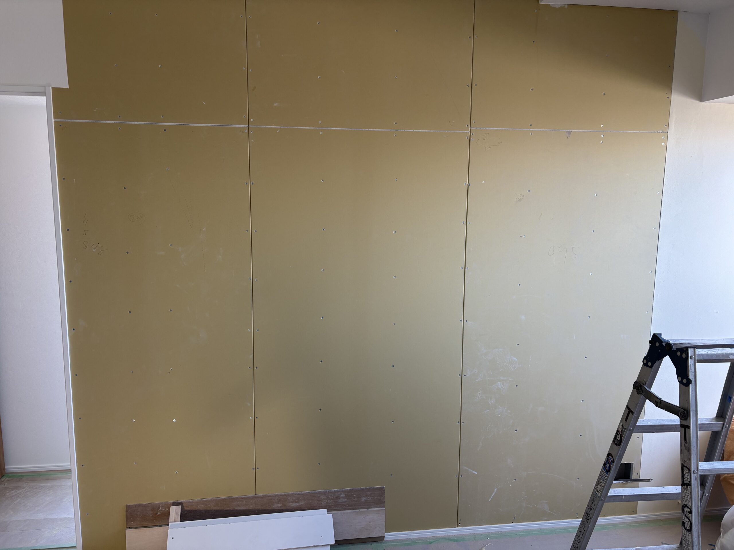 リビングのメインとなる壁面への施工のため、仕上がりの美しさはもちろん、長期的な耐久性・下地との密着性を重視した施工を行っています。