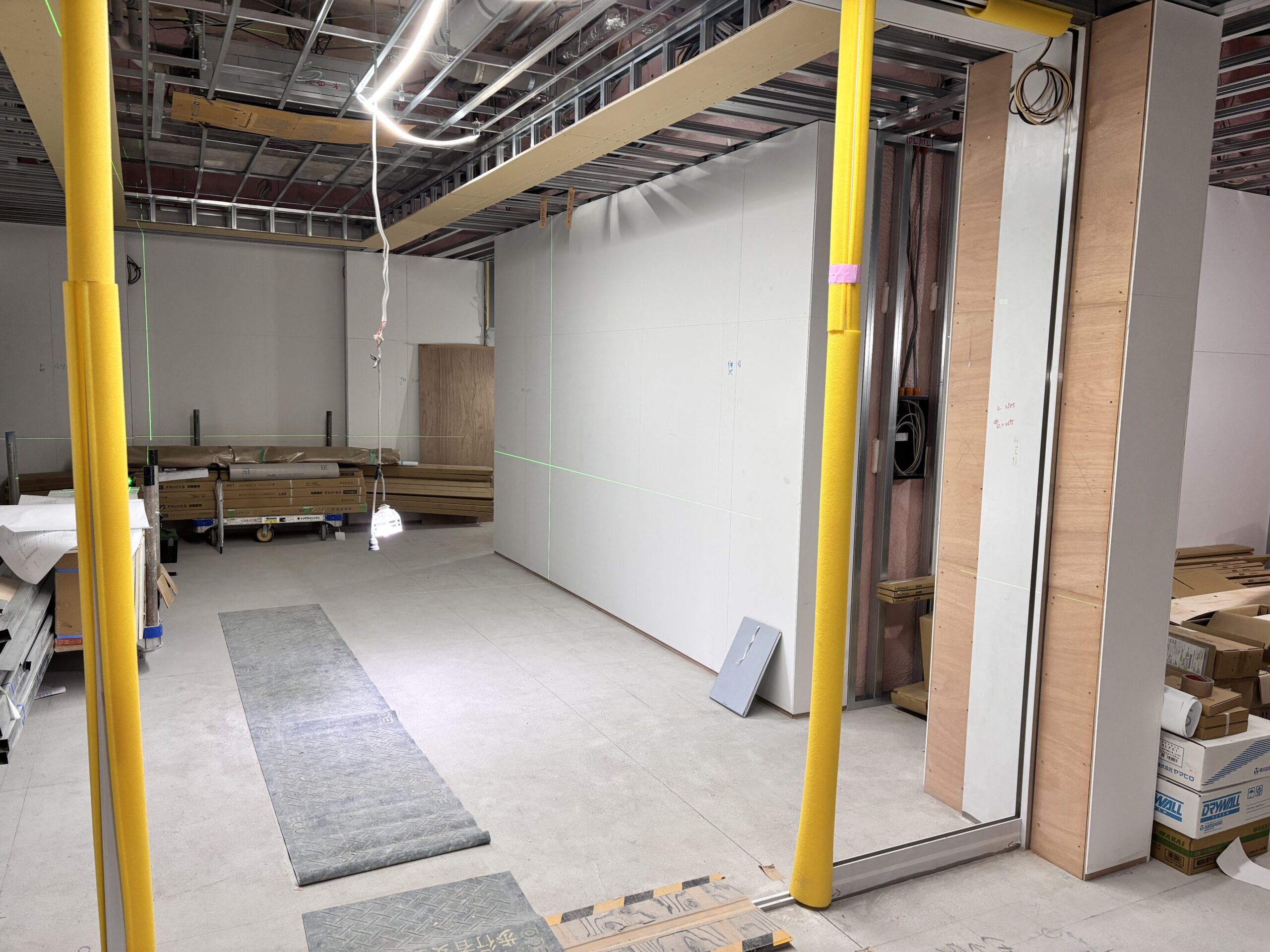 床から基準墨を出したうえで壁を施工し、